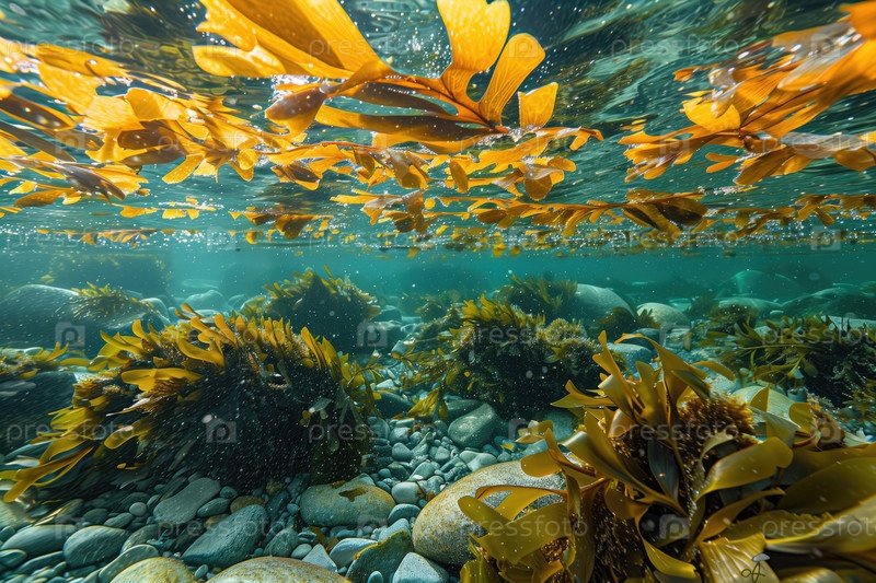 Подводный вид на мелководье моря с водорослями