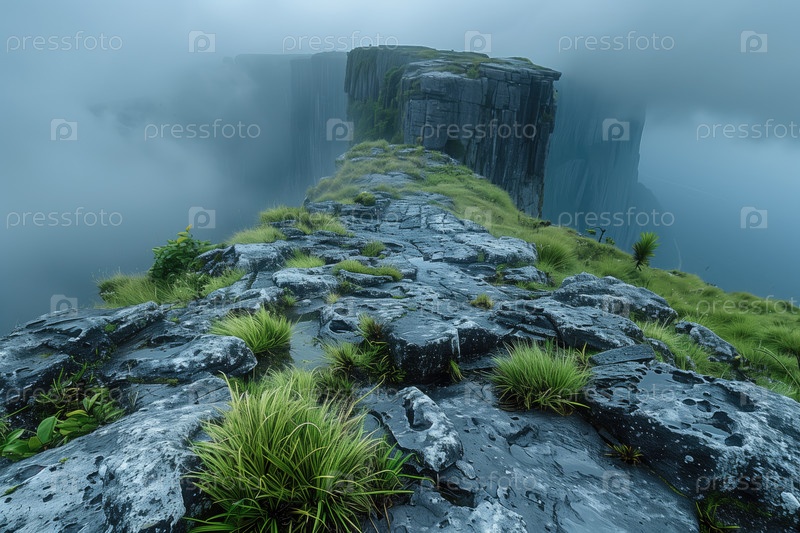 Горный пейзаж с туманным и дымчатым утром на рассвете