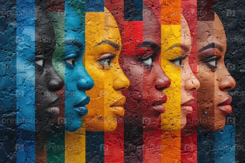 Фон, фреска с разноцветными лицами, символизирующими единство и многообразие