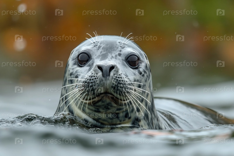 Портрет тюленя, выглядывающего из воды