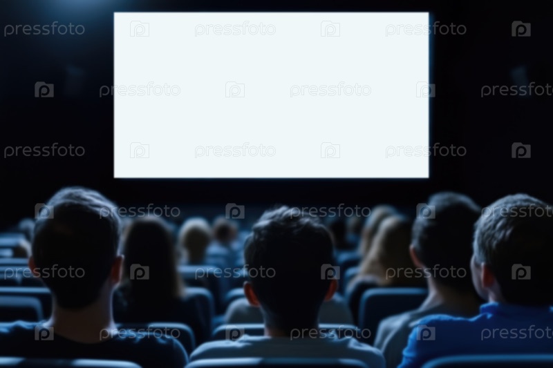 Концепция кино, развлечений и людей, крупный план кинозала с пустым экраном и копировальным пространством