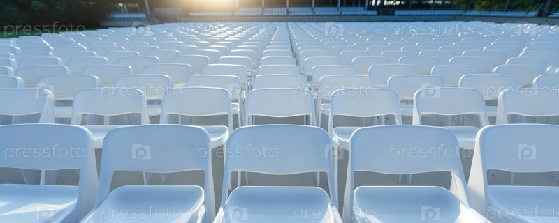 Пустые белые сиденья, готовые к мероприятию. Абстрактный фон