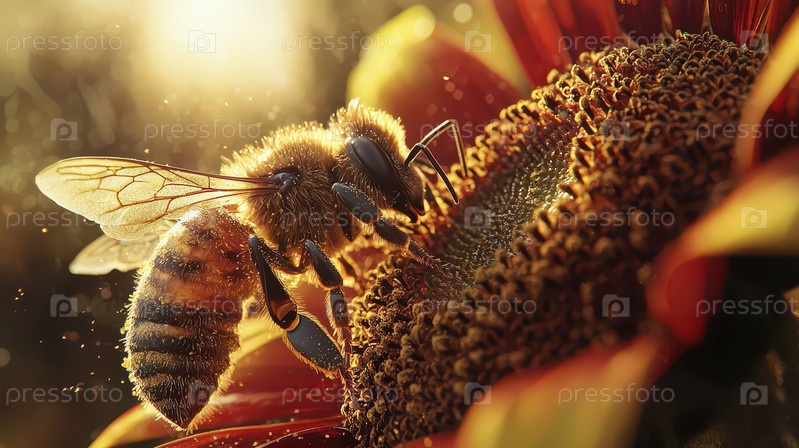Макрофотография пчелы, собирающей пыльцу