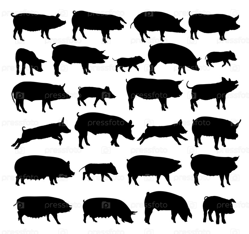 Набор силуэтов домашних свиней