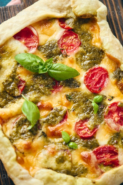 Закрыть uo fp Пирог типа печенья из слоевого теста с начинкой из помидоров, сыра моцарелла и соуса песто