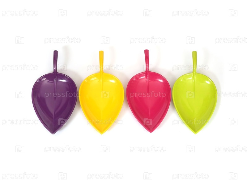 Блюдце в форме листа с разных ракурсов, изолированное на белом фоне