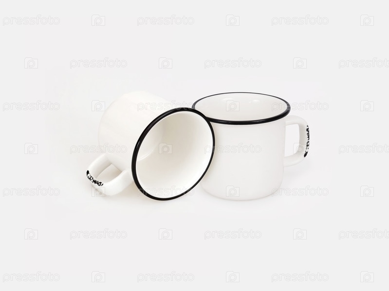 Белая керамическая кружка изолирована на белом фоне. Элемент дизайна с обтравочным контуром