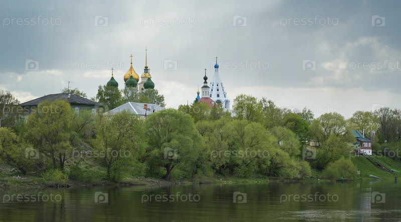 Летняя панорама Коломенского Кремля (Россия). Вид с берега Москвы-реки