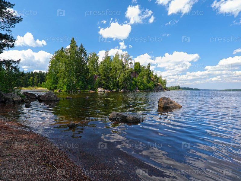 Парк Монрепо, Остров мертвых (Людвигштайн) содержит Людвигсбург, мавзолей барона Людвига Генриха фон Николая. Выборг, Россия. Летний вид