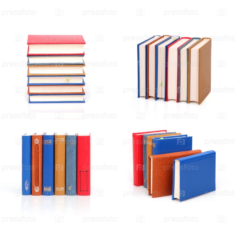 Набор из стопки книг в цветных обложках с белыми листами, изолированных на белом фоне