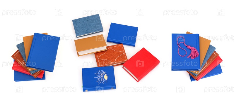 Стопка книг в цветных обложках с белыми листами, изолированных на белом фоне