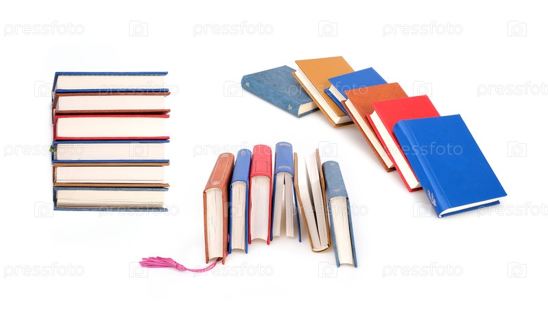 Стопка книг в цветных обложках с белыми листами, изолированных на белом фоне