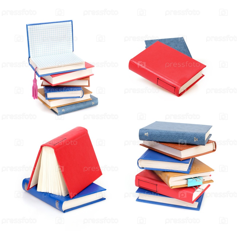 Стопка книг в цветных обложках с белыми листами, изолированных на белом фоне