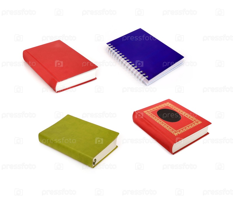 Книга в цветной обложке с белыми листами, изолированными на белом фоне