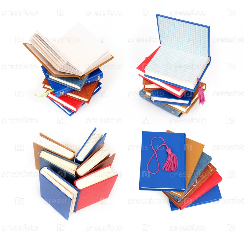Стопка книг в цветных обложках с белыми листами, изолированных на белом фоне