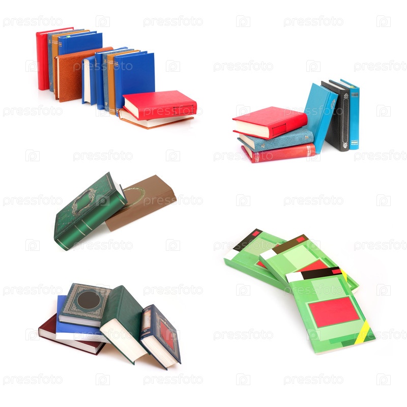 Набор из стопки книг в цветных обложках с белыми листами, изолированных на белом фоне