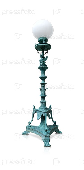 Бронзовый уличный фонарь в античном стиле неогрек, изолированный на белом фоне. Элемент дизайна с обтравочным контуром