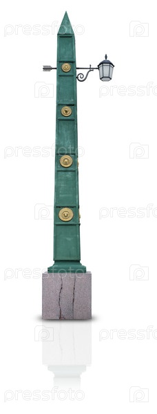 Уличный бронзовый фонарь, изолированный на белом фоне. Элемент дизайна с обтравочным контуром