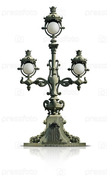 Уличный фонарь, изолированный на белом фоне. Элемент дизайна с обтравочным контуром