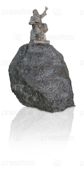 Парк Монрепо барона Людвига Генриха фон Николая. Выборг, Россия. Статуя героя эпоса Калевала Вяйнямейнена. Элемент дизайна с обтравочным контуром