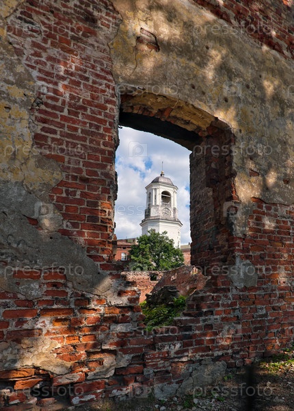 Выборг, Россия. Часовая башня Старого собора и руины Домского собора