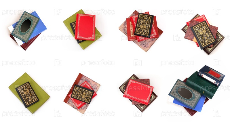 Набор из стопки книг в цветных обложках с белыми листами, изолированных на белом фоне