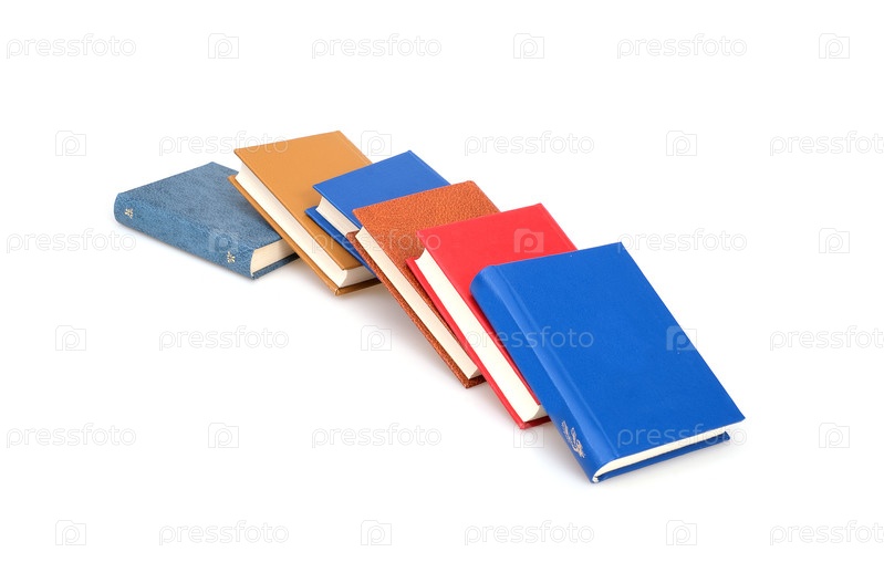 Стопка книг в цветных обложках с белыми листами, изолированных на белом фоне