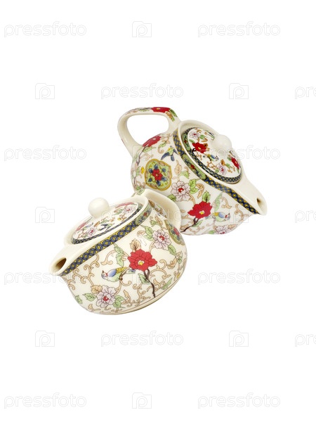 Фарфоровый чайник в китайском стиле, изолированный на белом фоне. Элемент дизайна с обтравочным контуром