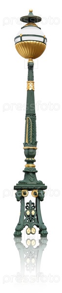 Бронзовый (с золотом) уличный фонарь, изолированный на белом фоне. Элемент дизайна с обтравочным контуром