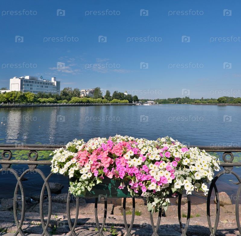 Город Выборг, Россия. Вид на город и замок с залива Большой Ковш (финское название Салаккалахти) летом