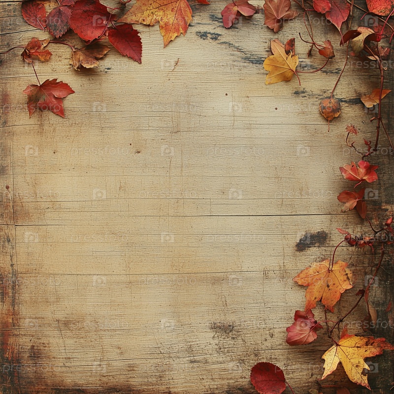 Осенние листья разбросаны по деревянной поверхности