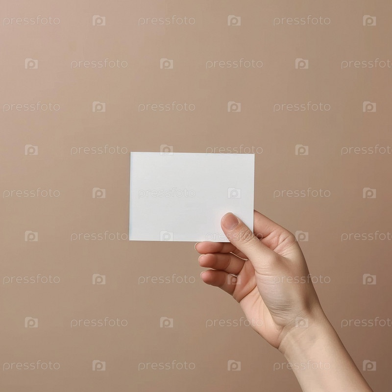 Рука держит маленькую белую наклейку. Макет для этикеток, рекламы, маркетинга