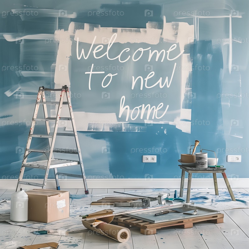 Знак «Добро пожаловать в новый дом» с принадлежностями для рисования