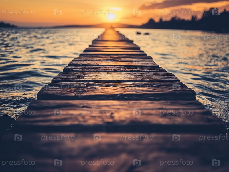 Деревянный пирс, уходящий в океан на закате