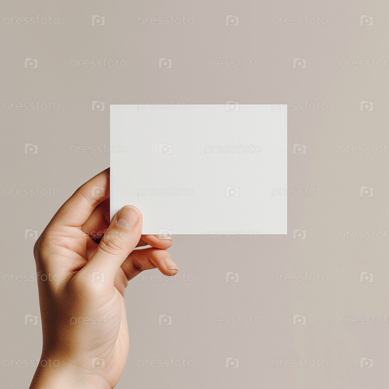 Рука держит маленькую белую наклейку. Макет для этикеток, рекламы, маркетинга