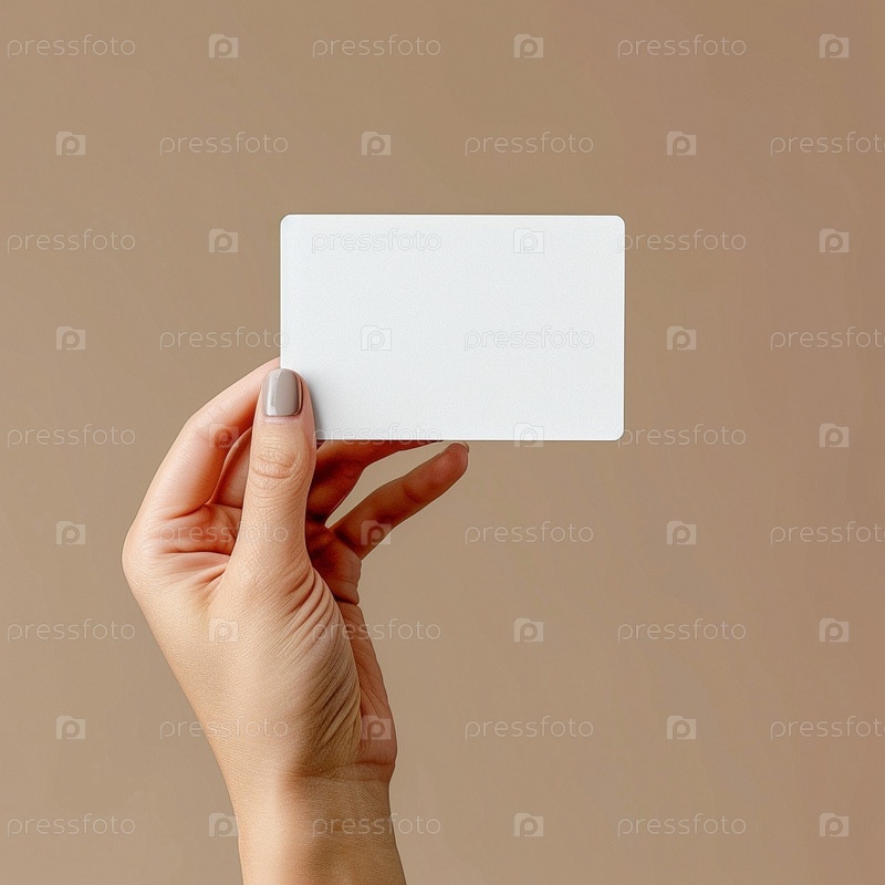 Рука держит маленькую белую наклейку. Макет для этикеток, рекламы, маркетинга