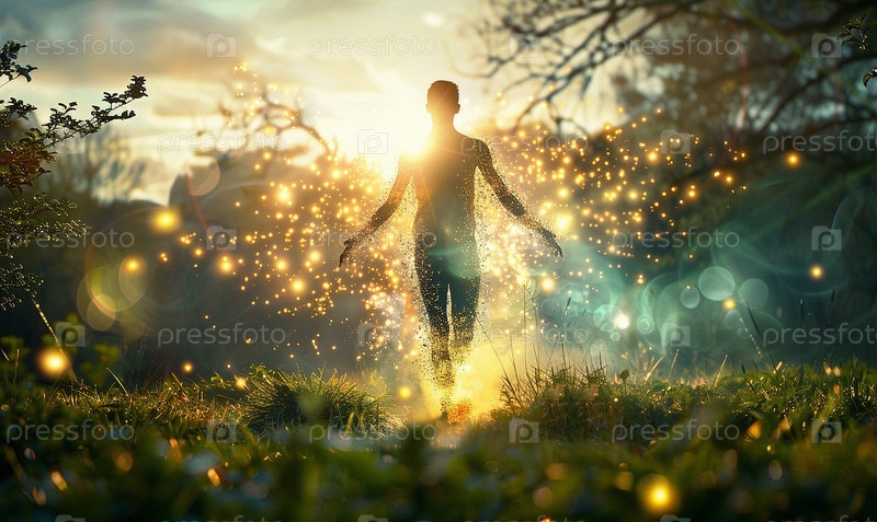 Летняя и весенняя энергия. Мужчина улавливает флюиды