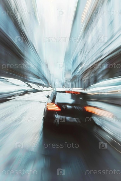 Автомобиль движется на высокой скорости с эффектом размытия движения