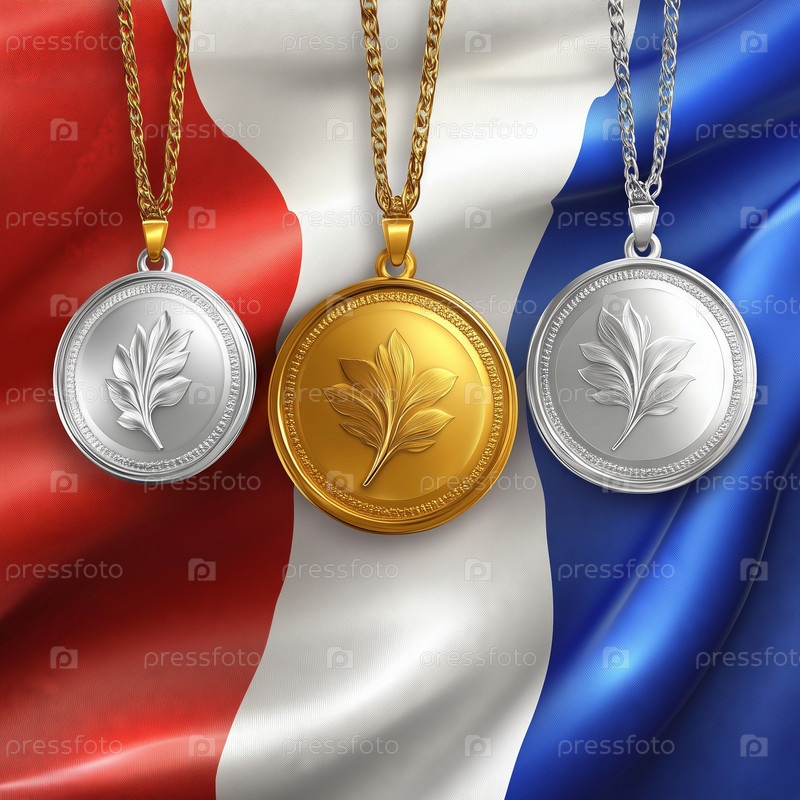 Золотая, 2 серебряные медали на французском флаге
