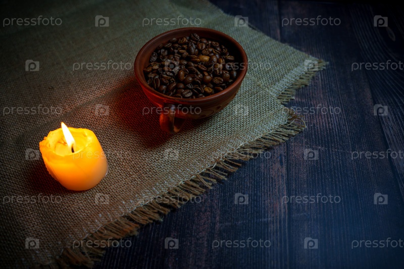 Кофейные зерна в глиняной кружке