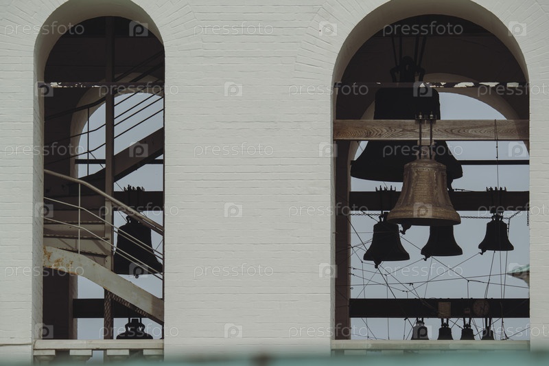 Колокольня с большими колоколами, видимыми через арки