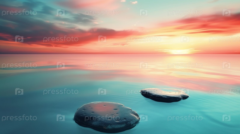 Сбалансированные камни с цветком в спокойной водной обстановке