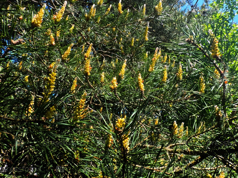 Молодые шишки с почками крупным планом