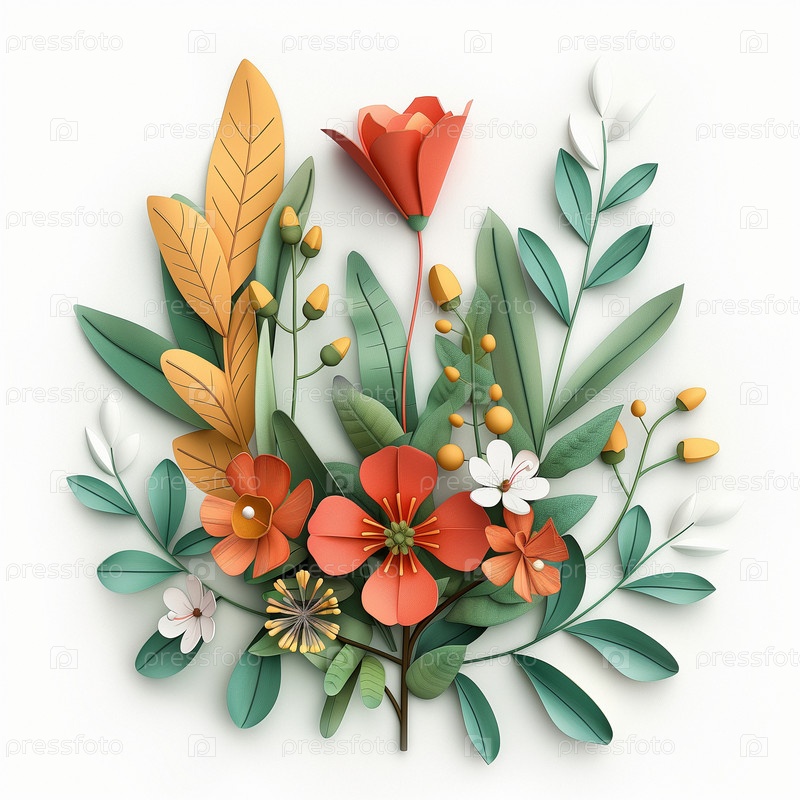 Композиция из 3D цветов на изолированном белом фоне