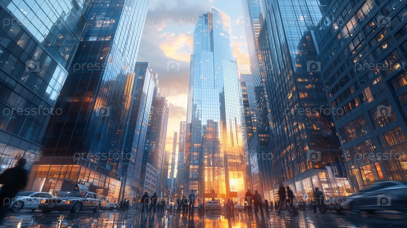 Солнечный свет отражается от современных небоскребов в футуристическом городе