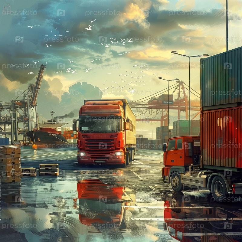 Транспорт и концепция логистических перевозок. Грузовики, корабли, самолеты, логистика доставки грузов