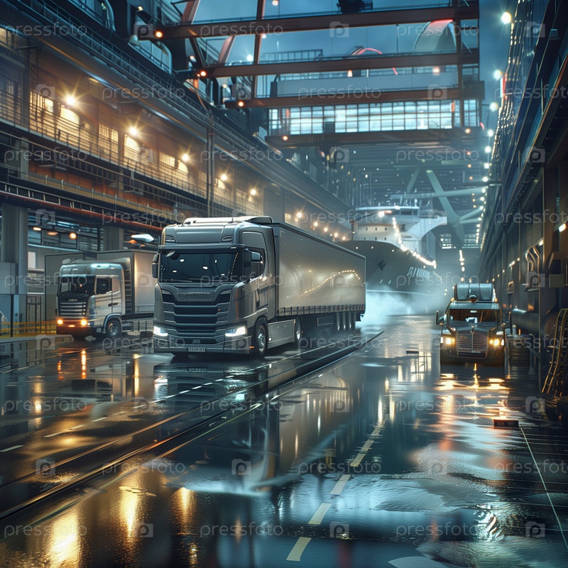 Транспорт и концепция логистических перевозок. Грузовики, корабли, самолеты, логистика доставки грузов