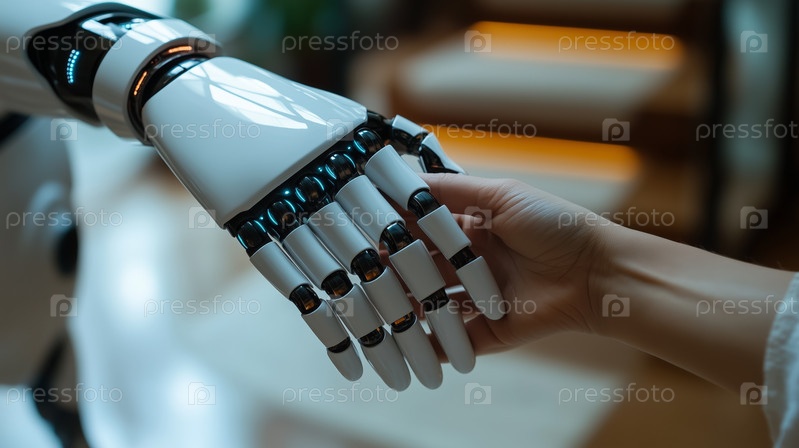 Крупный план соединения робота и человеческой руки