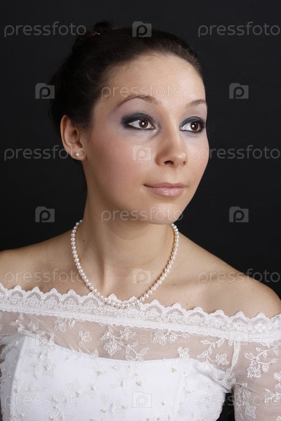Женщина в белом платье на черном фоне