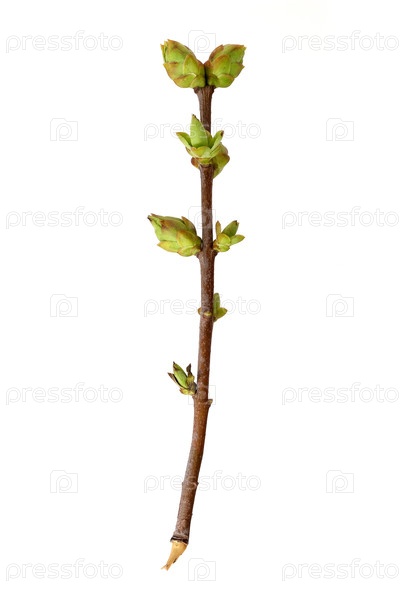 Ветка растения с почками и маленькими листьями, изолированная на белом фоне
